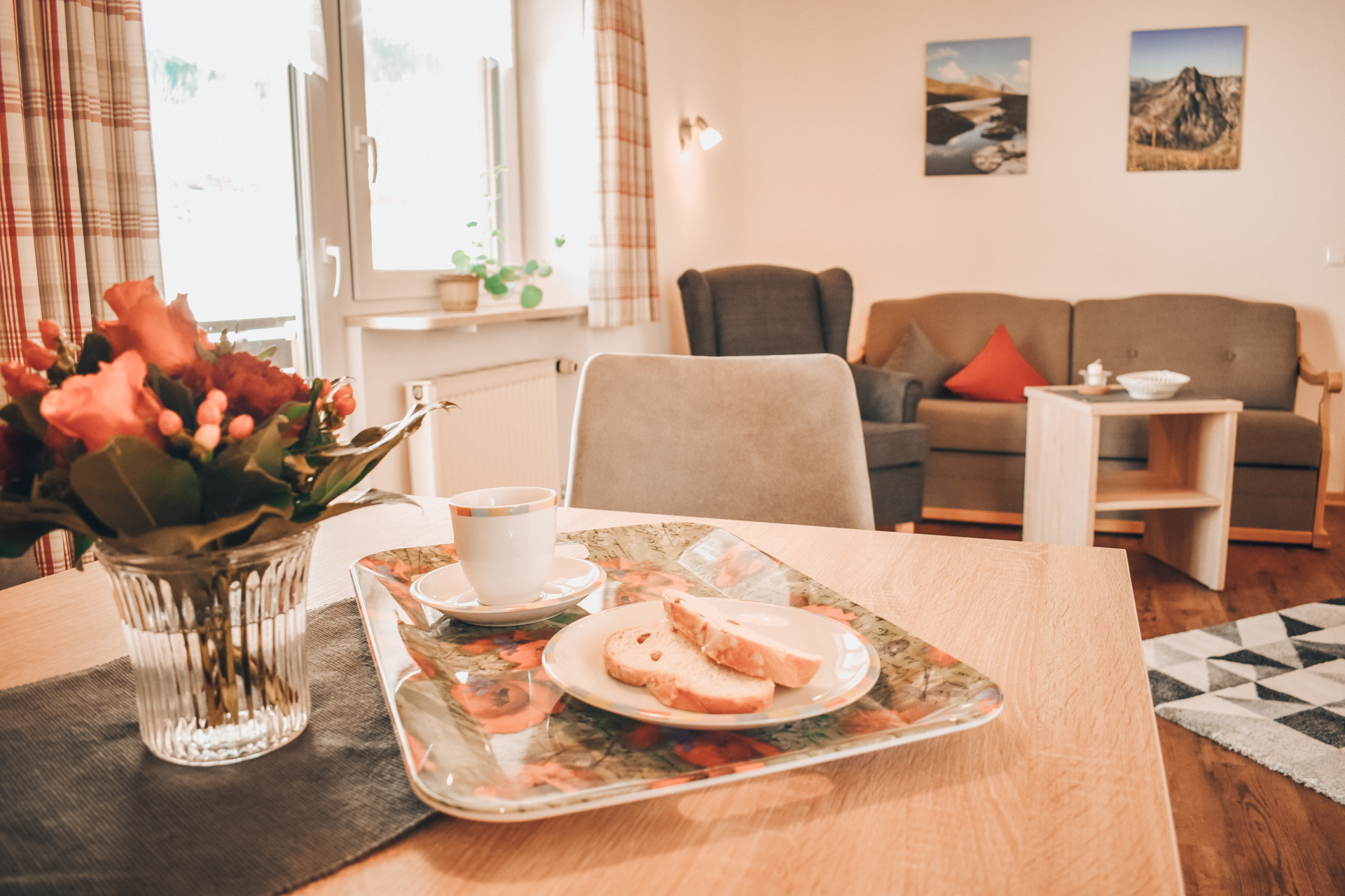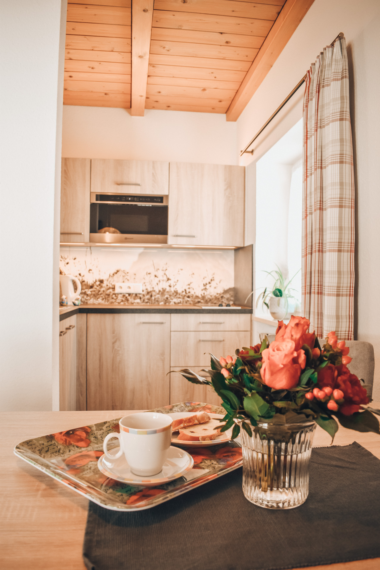 Unsere Ferienwohnung Buchenhain wurde Anfang 2021 komplett renoviert und neu eingerichtet. Die gemütliche Ferienwohnung lädt mit ihrer ruhigen Lage und dem schönen Bergblick vom Balkon zum Abschalten und Erholen ein.