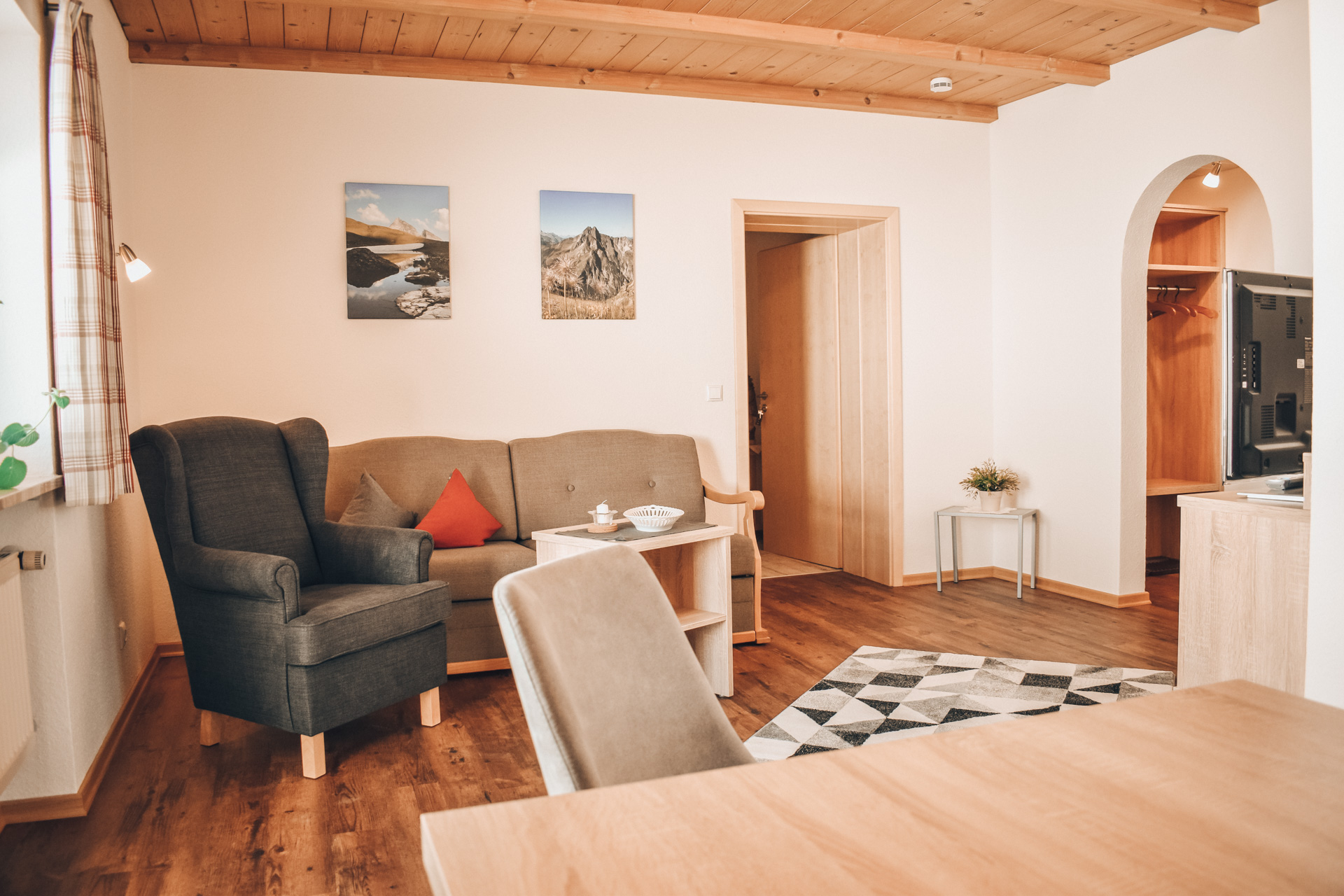 Auch bei unseren Ferienwohnungen legen wir großen Wert auf Gemütlichkeit und traditionelle Einrichtung, denn schließlich liegt uns sehr viel am Wohlbefinden unserer Gäste. Unsere Ferienwohnungen sind großzügig im Raumangebot und bieten jeglichen Komfort. Unsere Schlafzimmer sind mit großen und komfortablen Betten ausgestattet, damit Sie z.B. nach einer Wanderung oder Bergtour zu Ihrem wohlverdienten Schlaf kommen und Sie den nächsten Tag gut ausgeruht und mit neuer Energie genießen können.