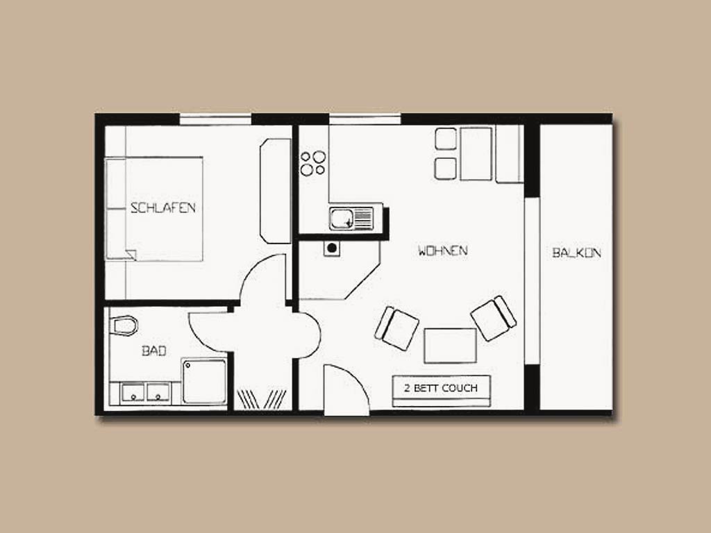 | TV | Küche im Wohnraum | Mikrowelle/Spülmaschine | getrennter Wohn-/Schlafraum |